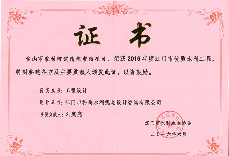 臺(tái)山市農(nóng)村河道清淤整治項(xiàng)目獲市優(yōu)質(zhì)水利工程獎(jiǎng)