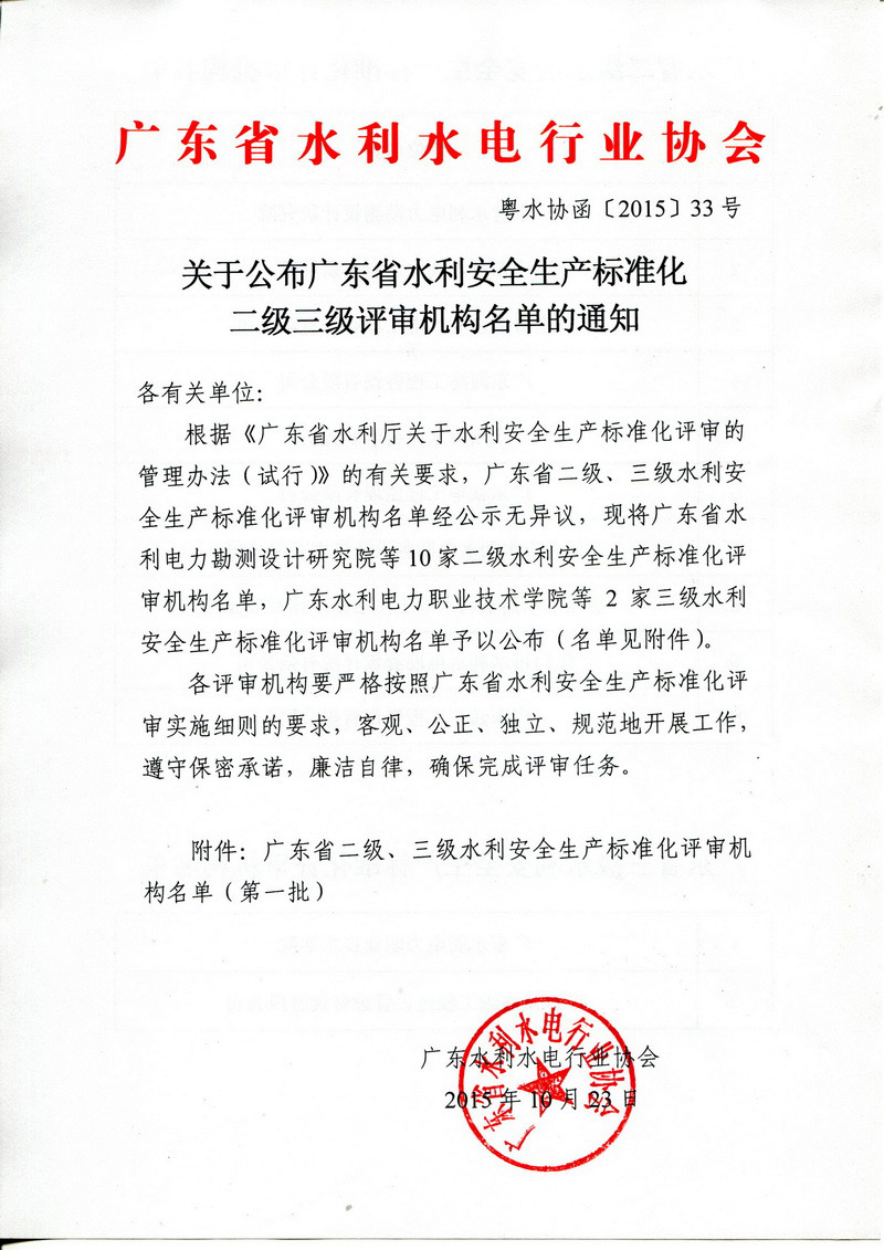 熱烈祝賀我公司成為廣東省首批二級(jí)水利安全生產(chǎn)標(biāo)準(zhǔn)化評(píng)審機(jī)構(gòu)