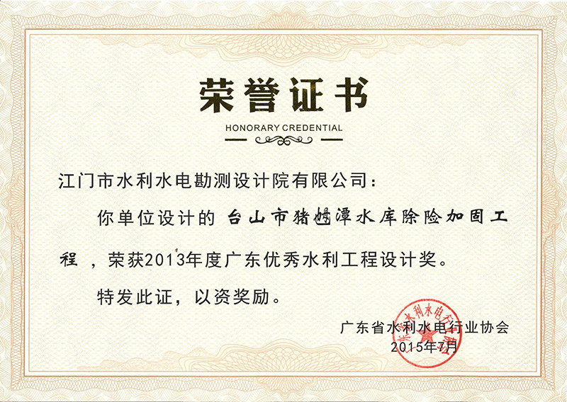 臺山市豬乸潭水庫出現(xiàn)加固工程獲得省優(yōu)秀設(shè)計獎