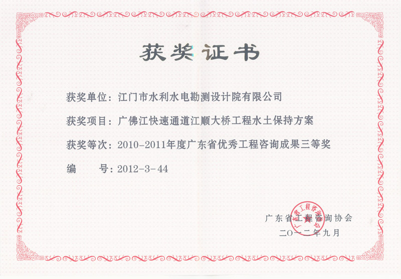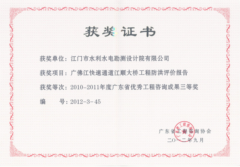 江順大橋榮獲廣東省優(yōu)秀工程咨詢成果三等獎(jiǎng)