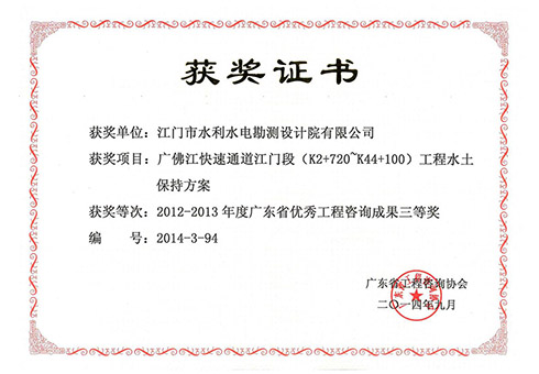 廣佛江快速通道江門段工程水土保持方案獲省工程咨詢成果三等獎(jiǎng)