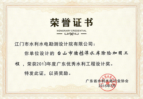 臺(tái)山市豬乸潭水庫(kù)出現(xiàn)加固工程獲得省優(yōu)秀設(shè)計(jì)獎(jiǎng)