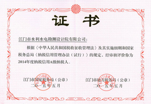 2014年度納稅信用評(píng)價(jià)A級(jí)納稅人