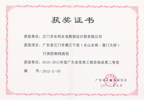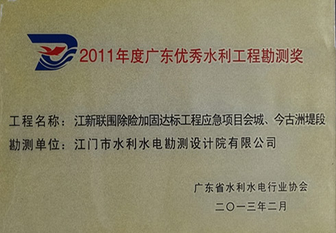 江新聯(lián)圍2011年度廣東優(yōu)秀水利工程勘測獎