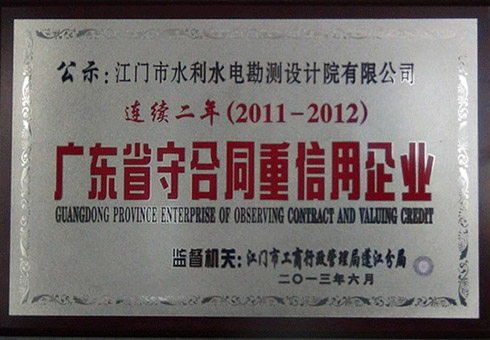 熱烈慶祝公司獲得2011-2012年連續(xù)二年廣東省守合同重信用企業(yè)