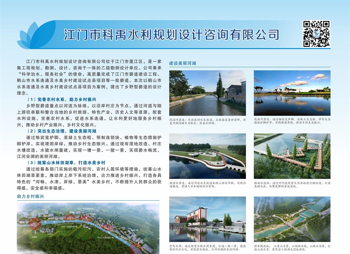 近期,在廣東省河長辦指導下,廣東省水利水電行業(yè)協(xié)會在廣東水利大廈成功舉辦了廣東萬里碧道設計理念及建設成果展。這次成果展充分展示了各地區(qū)具有特色的治水成果,體現(xiàn)了當前萬里碧道設計理念和建設成果的先進水平,提供了一批可復制、可推廣的碧道建設模式和的治水經(jīng)驗。江門市科禹水利規(guī)劃設計咨詢有限公司設計團隊認真總結(jié)碧道設計經(jīng)驗,積極參與了此次碧道設計理念成果展,得到了水利同行的一致認可。