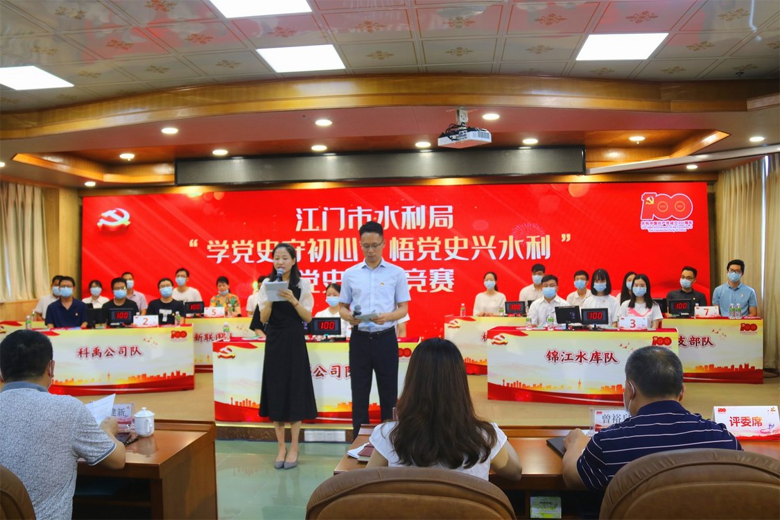 為慶祝中國(guó)共產(chǎn)黨成立100周年,推進(jìn)黨史學(xué)習(xí)教育走深走實(shí),營(yíng)造學(xué)黨史、悟思想、辦實(shí)事、開新局的濃厚氛圍,根據(jù)江門市水利局《關(guān)于開展“學(xué)黨史守初心 悟黨史興水利”黨史知識(shí)競(jìng)賽的通知》(江水黨委〔2021〕8號(hào))文件精神,我公司黨支部高度重視黨史知識(shí)競(jìng)賽,認(rèn)真?zhèn)滟?,精心選拔參賽人員參加市水利局黨史知識(shí)競(jìng)賽活動(dòng)。
